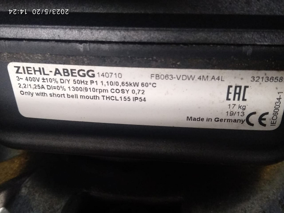1063 Май 2023 подбирали: Вентилятор ZIEHL-ABEGG FB063-VDW.4M.A4L