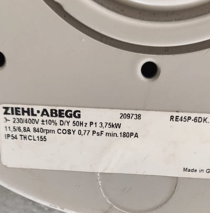 1164 Август 2023 подбирали: Вентилятор ZIEHL-ABEGG RE45P-6DK.